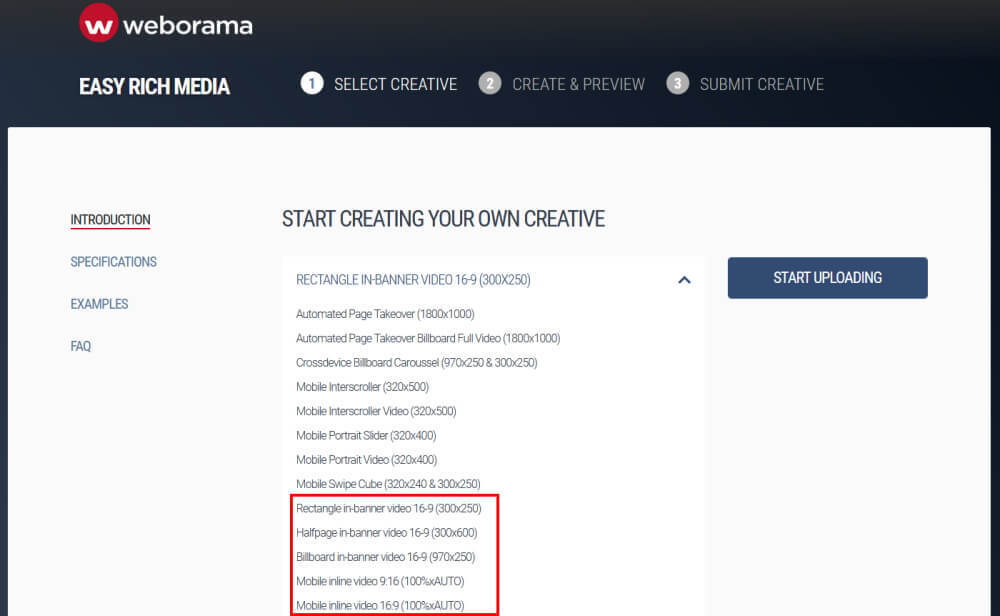 De Easy Rich Media website is uitgebreid met 5 nieuwe video formaten: 970x250, 300x250, 300x600 in-banner video formaten en 2 mobile inline video formaten: horizontal en vertical video.