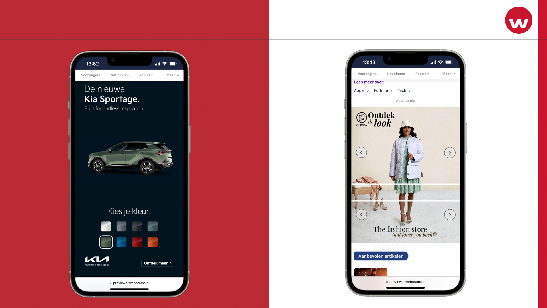 Mocht je er zelf niet uitkomen, laat dan het sales team meedenken met je via sales@weborama.nl. Tenslotte kun je voor de nodige inspiratie altijd een kijkje nemen bij de interactieve creatie categorie op de Weboshowcase.