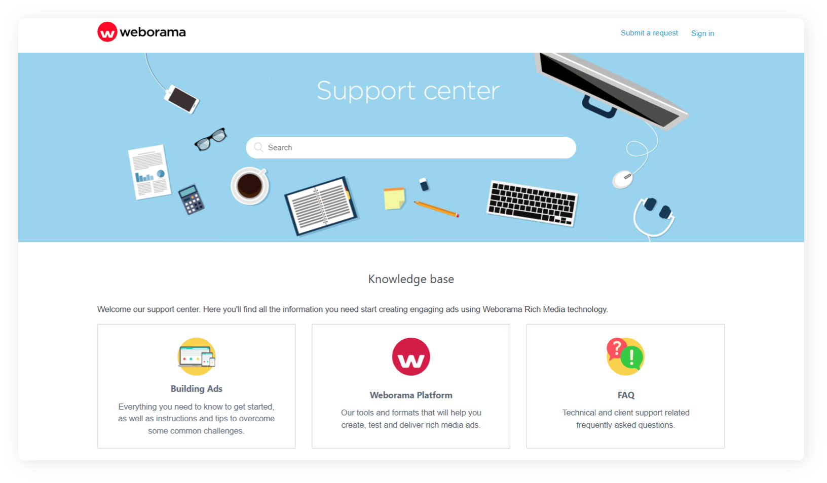Our support center contains all the information you need to create interactive banners with our Rich Media technology. We guide you through HTML5, using our online previewer and building snippets in your banner.